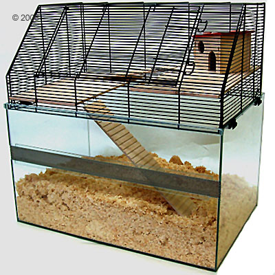Nur dass das Gitter oben genau die form hat wie der Kasten unten..... Futternapf, Unterschlupf, Tränke und ein Rohr sind dabei!
